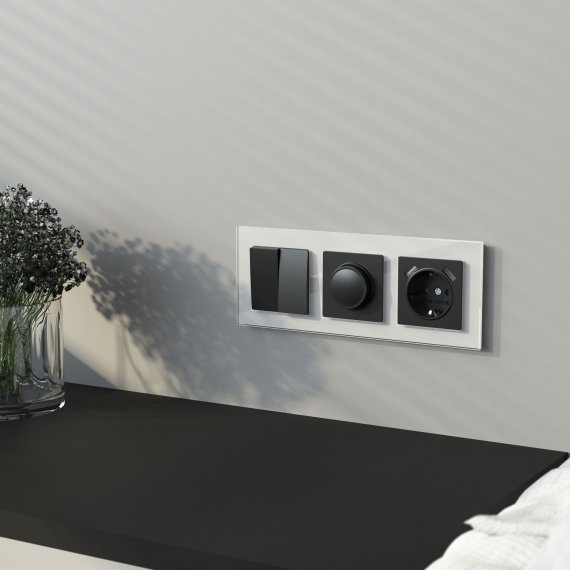 Рамка Favorit выполнена из закаленного стекла толщиной 5 мм. Идеально отшлифованные грани, подчеркнутые прямой фаской, создают необычайную игру света и придают дополнительный объем стеклу.