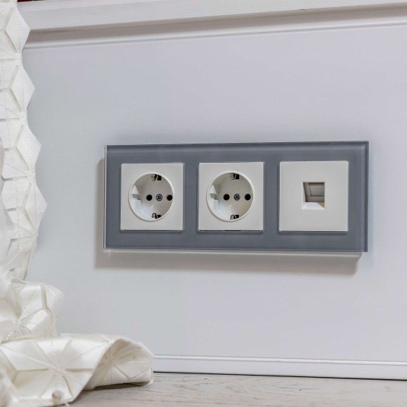 W0031115/ Рамка на 3 поста Favorit (серый,стекло)