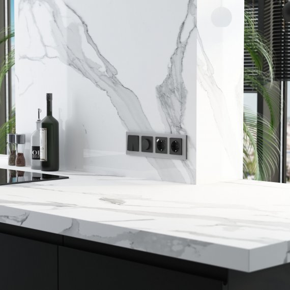 Рамка Senso soft-touch в серебряном цвете выполнена из закаленного стекла. Идеально отшлифованные грани, подчеркнутые прямой фаской, создают необычайную игру света и придают дополнительный объем стеклу.