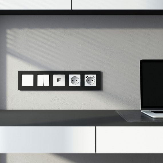 Серия Slab представлена моделями от одного до четырех постов. Рамки предназначены как для горизонтального, так и для вертикального монтажа. Коллекция совместима с любыми встраиваемыми механизмами Werkel.