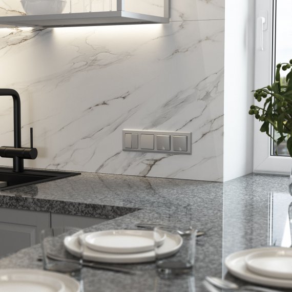 Электроустановочное изделие монтируется в установочную коробку, оставляя видимым только внешнюю лицевую панель и накладную рамку. Механизм для скрытой установки оснащен суппортом из нержавеющей стали, позволяющий крепко зафиксировать изделие в подрозетнике. Надежные контакты из фосфористой бронзы и серебра выдерживают большую нагрузку и обладают большим эксплуатационным ресурсом 40 000 циклов.