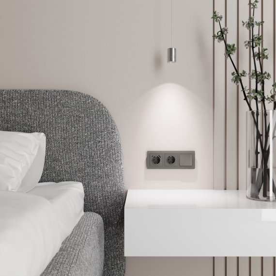 Электроустановнчное изделие монтируется в установочную коробку, оставляя видимым только внешнюю лицевую панель и накладную рамку. Механизм для скрытой установки оснащен суппортом из нержавеющей стали, позволяющий крепко зафиксировать изделие в подрозетнике. Надежные контакты из фосфористой бронзы и серебра выдерживают большую нагрузку и обладают большим эксплуатационным ресурсом 40 000 циклов.