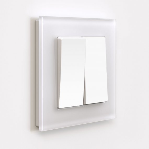 Механизм двухклавишного выключателя оснащен матовой лицевой панелью. Матовая поверхность – это современный тренд, задающий стиль вашему интерьеру. Она не бликует, обладает бархатистой фактурой и тактильной мягкостью. Белый цвет будет эффектно смотреться в любом интерьерном пространстве и гармонично сочетаться с любыми материалами.