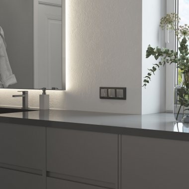 Электроустановочное изделие монтируется в установочную коробку, оставляя видимым только внешнюю лицевую панель и накладную рамку. Механизм для скрытой установки оснащен суппортом из нержавеющей стали, позволяющий крепко зафиксировать изделие в подрозетнике. Надежные контакты из фосфористой бронзы и серебра выдерживают большую нагрузку и обладают большим эксплуатационным ресурсом 40 000 циклов.