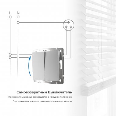 Самовозвратный выключатель создан для удобного и безопасного управления электроприводами различных механизмов. Он предназначен для коммутации одной цепи, при этом после нажатия клавиша возвращается в исходное положение. Одна клавиша выключателя работает на движение механизма в одну сторону, другая — в обратную. Например, подъем – опускание жалюзи, открытие – закрытие ворот. При этом для защиты электроприводов в выключатель встроен механизм, предотвращающий одновременное нажатие на обе клавиши. Устанавливается в стандартный подрозетник также как обычный выключатель. С его помощью можно управлять: жалюзи, шторами, воротами, ролетами, рольставнями и другими механизмами, оснащенными электроприводами.