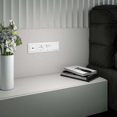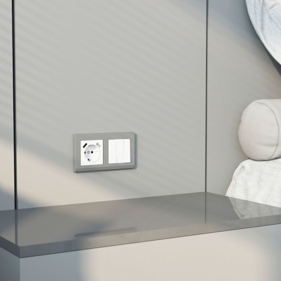 Электроустановочное изделие монтируется в установочную коробку, оставляя видимым только внешнюю лицевую панель и накладную рамку. Механизм для скрытой установки оснащен суппортом из нержавеющей стали, позволяющий крепко зафиксировать изделие в подрозетнике. Надежные контакты из фосфористой бронзы и серебра выдерживают большую нагрузку и обладают большим эксплуатационным ресурсом 40 000 циклов.