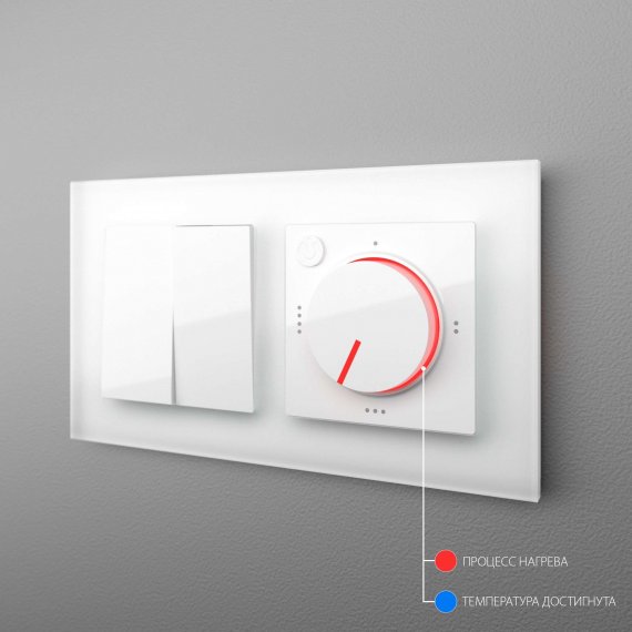 Совместимый со всеми рамками Werkel™ терморегулятор оснащен светодиодной индикацией режимов работы. Максимальная температура нагрева составляет 50°C. Включение красного светодиода сигнализирует о процессе нагрева. При достижении заданной температуры включается синяя подсветка.