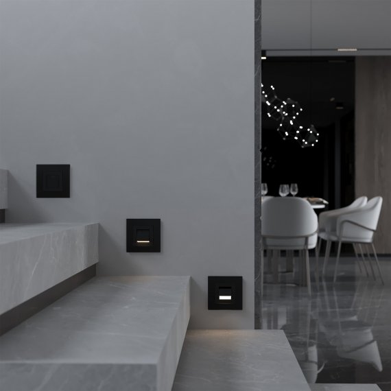 Встраиваемая LED подсветка Turn в цвете черный матовый W1154708 используется для подсветки ступеней лестниц, коридоров, прикроватной и кухонной зоны. Она может выполнять функцию ночника, при этом световой поток направляется вниз, избегая попадания в глаза, а уровень света достаточный, чтобы ориентироваться в темноте, не включая общий свет.