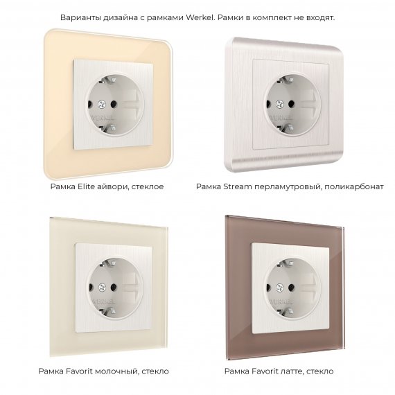 Внешняя лицевая панель выполнена из высококачественного поликарбоната, устойчивого к высоким температурам. Встраиваемая розетка с заземлением совместима со всеми рамками из коллекций Werkel™, характеризуется удобством использования и обеспечивает надежный контакт.
