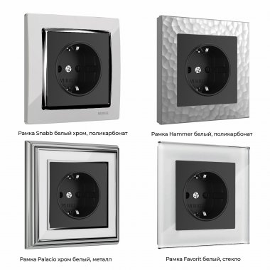 Внешняя лицевая панель выполнена из высококачественного поликарбоната, устойчивого к высоким температурам. Встраиваемая розетка с заземлением совместима со всеми рамками из коллекций Werkel™, характеризуется удобством использования и обеспечивает надежный контакт.