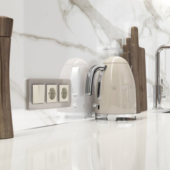 Механизм розетки с заземлением и шторками оснащен матовой лицевой панелью. Матовая поверхность – это современный тренд, задающий стиль вашему интерьеру. Она не бликует, обладает бархатистой фактурой и тактильной мягкостью. Цвет айвори будет эффектно смотреться в любом интерьерном пространстве и гармонично сочетаться с любыми материалами.