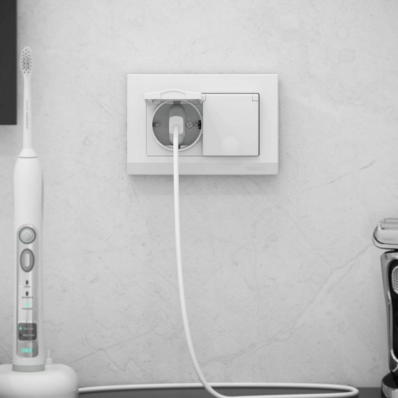 Встраиваемая розетка с заземлением совместима со всеми рамками из коллекций Werkel™, характеризуется удобством использования и обеспечивает надежный контакт.