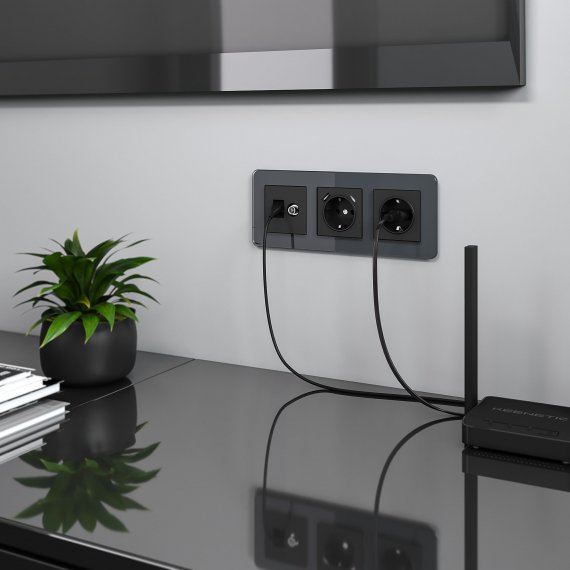 Розетка ТВ + Ethernet RJ-45 6 cat. — это механизм, который объединил в себе два разъема для подключения. Удобное решение сдвоенной розетки позволяет подключиться к телевизионной и интернет сети, что очень актуально для современных моделей телевизоров, которые поддерживают два способа соединения. ТВ Розетка имеет удобное подключение и обеспечивает надежный контакт кабеля.