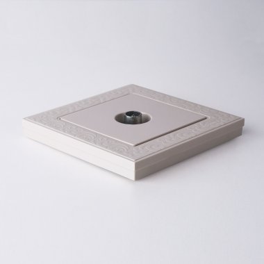 Механизм монтируется в подрозетник, оставляя видимым только внешнюю лицевую панель и декоративную рамку. Телевизионная розетка для скрытой установки оснащена суппортом из нержавеющей стали и распорными лапками, позволяющие надежно зафиксировать изделие в подрозетнике.