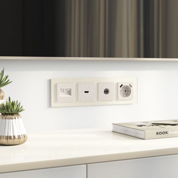 W1191113/ Накладка для двойной розетки Еthernet RJ-45 (перламутровый рифленый)