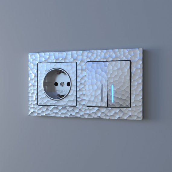 W1222106/ Выключатель двухклавишный проходной с подсветкой (hammer серебряный)