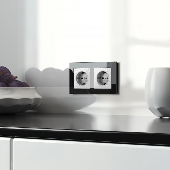 Механизм с суппортом из нержавеющей стали устанавливается в подрозетник и надежно фиксируется с помощью винтов и распорных лапок. Розетка оборудована защитными шторками, обеспечивающие дополнительную безопасность. Внешняя лицевая панель выполнена из высококачественного поликарбоната, устойчивого к высоким температурам.