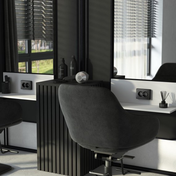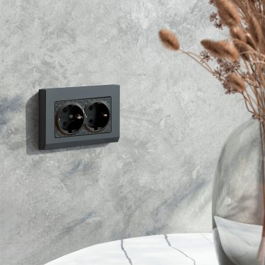 W1272008/ Розетка двойная с заземлением (hammer черный)