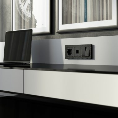 Механизм монтируется в установочную коробку, оставляя видимым только внешнюю лицевую панель и декоративную рамку. Компьютерная розетка для скрытой установки оснащена суппортом из нержавеющей стали и распорными лапками, позволяющие крепко зафиксировать изделие в подрозетнике.