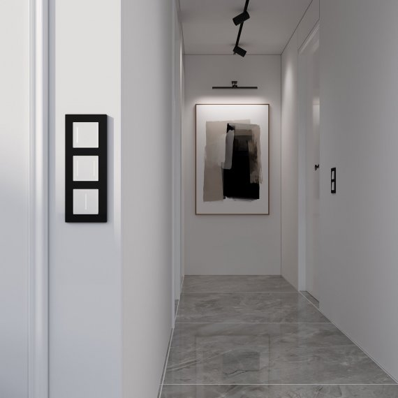 Модель выполнена в минималистичном трендовом дизайне. Лаконичные линии и белая подсветка гармонично сочетаются, не перегружают пространство и поддерживают любую концепцию интерьера. Лицевая панель выполнена из закаленного стекла с покрытием Soft Touch. Умные диммеры сочетаются со всеми рамками Werkel как в классических, так и в современных стилях.