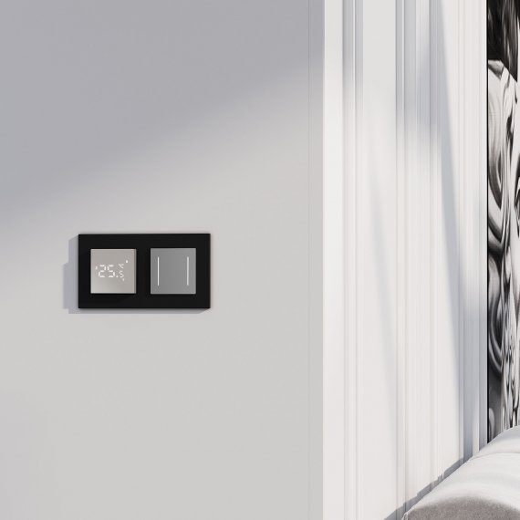 Сенсорный выключатель имеет стеклянную поверхность Soft-touch, которая обладает приятным тактильным эффектом. За счет матового фактурного покрытия лицевая панель не бликует и на ней не остается следов.