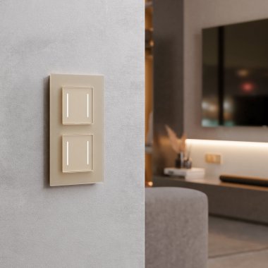 Сенсорный выключатель имеет стеклянную поверхность Soft-touch, которая обладает приятным тактильным эффектом. За счет матового фактурного покрытия лицевая панель не бликует и на ней не остается следов.