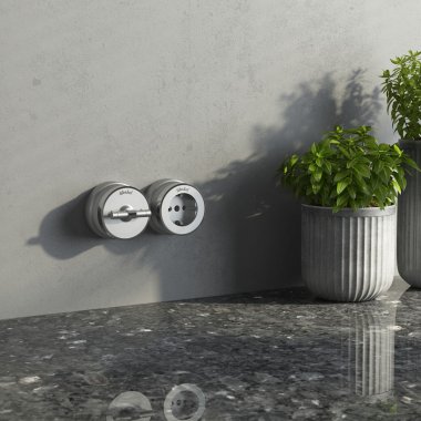 Дополнить образ помогут рамки Werkel из металла, стекла, и дерева, а так же аксессуары для накладного монтажа проводки.