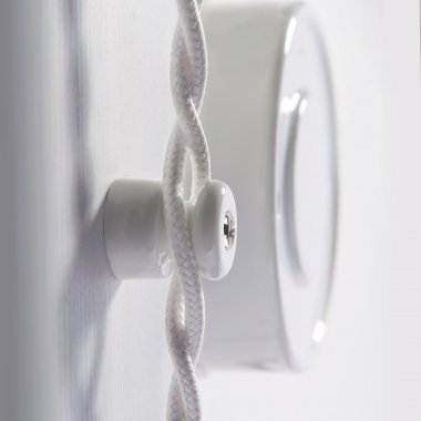 Более того, ретро проводка как раз и находит свое основное применение в тех строениях, где стены сделаны из дерева или отделаны деревянными панелями изнутри, так как именно она отвечает повышенным требованиям к пожарной безопасности. При установке фиксируется с помощью керамического изолятора с интервалом 45 см. Выводить провод между стенами можно с помощью керамической втулки.