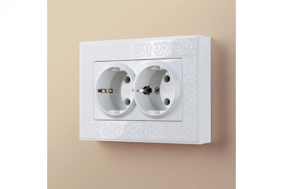 WL01-SKG-02-IP20 / Розетка двойная с заземлением (белая)