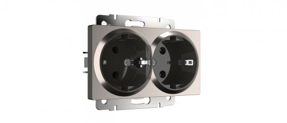 WL02-SKG-02-IP20/ Розетка двойная с заземлением (глянцевый никель)