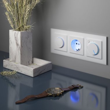 Устройство предназначено для регулировки температуры поверхности пола в помещениях. Терморегулятор совместим со всеми типами теплых полов и рассчитан нагрузку до 3500 Вт. Совместимый со всеми рамками Werkel терморегулятор оснащен светодиодной индикацией режимов работы. Максимальная температура нагрева составляет 50°C. Включение красного светодиода сигнализирует о процессе нагрева. При достижении заданной температуры включается синяя подсветка.