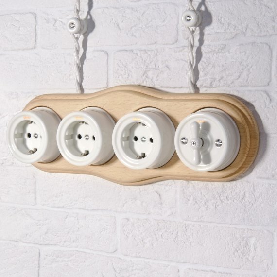 WL18-03-01/ Розетка с заземлением (белый) Ретро